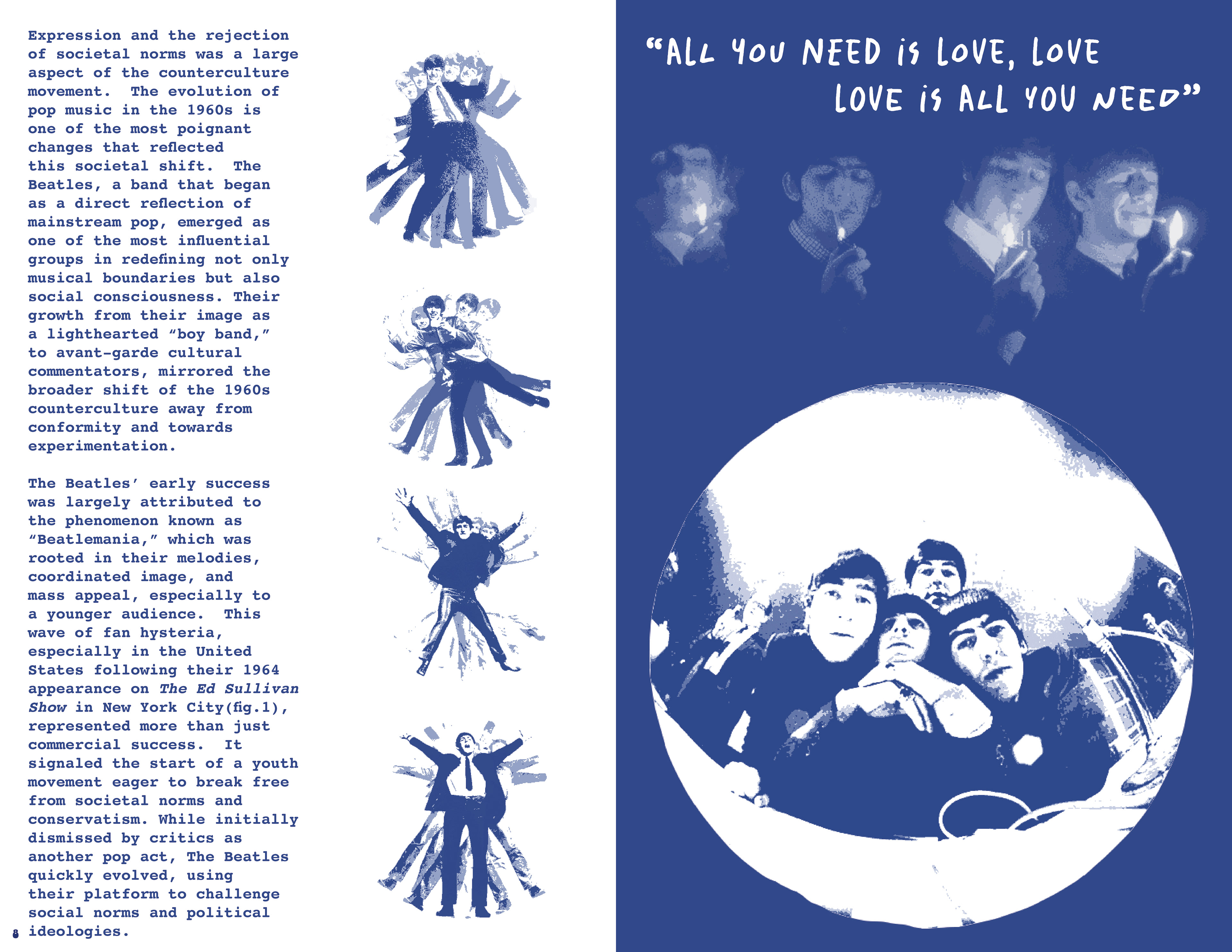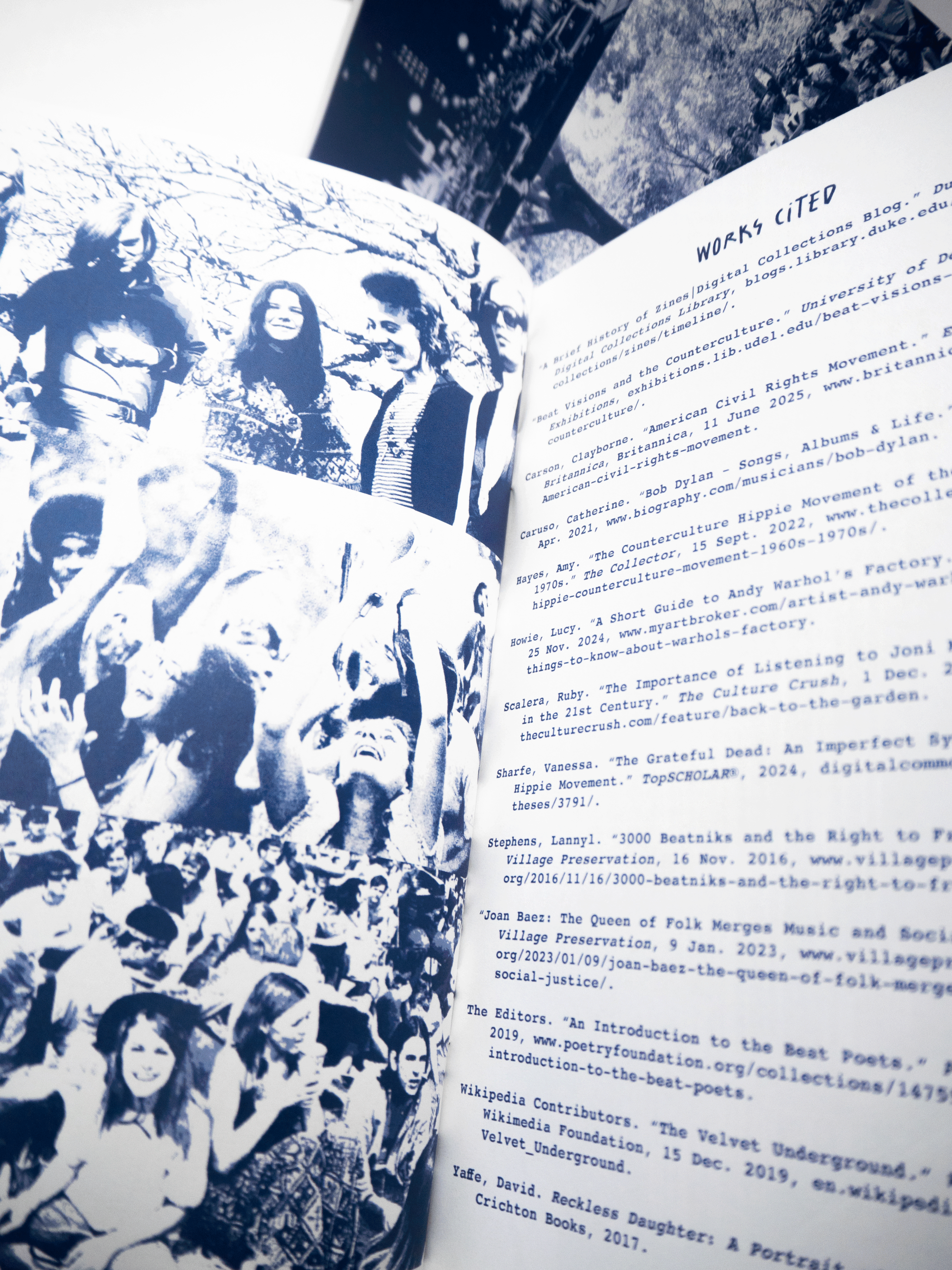 This zine combines documentary photography, layout design, and historical research to create a visual and narrative exploration of how music intersected with countercultural values in the 1960s.